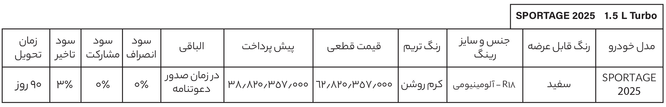 نوع محصول | کیا اسپورتیج توربو |